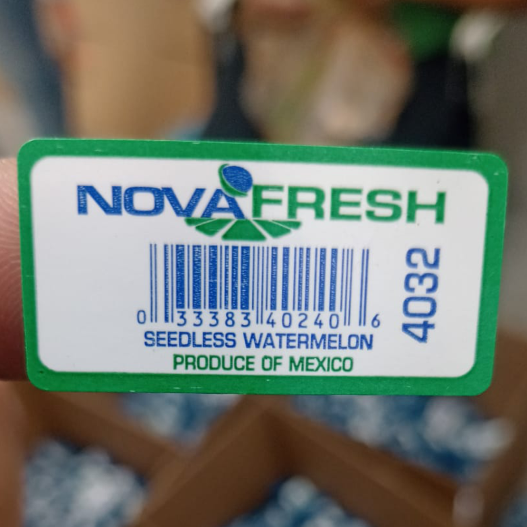 Diseñadas especialmente para frutas y verduras. Es completamente personalizable. Algo a considerar es que su costo es más elevado que el de la cinta identificadora, además, si no cuenta con el adhesivo apropiado, en el caso de frutas delicadas, su desprendimiento puede llegar a lastimar la cáscara.